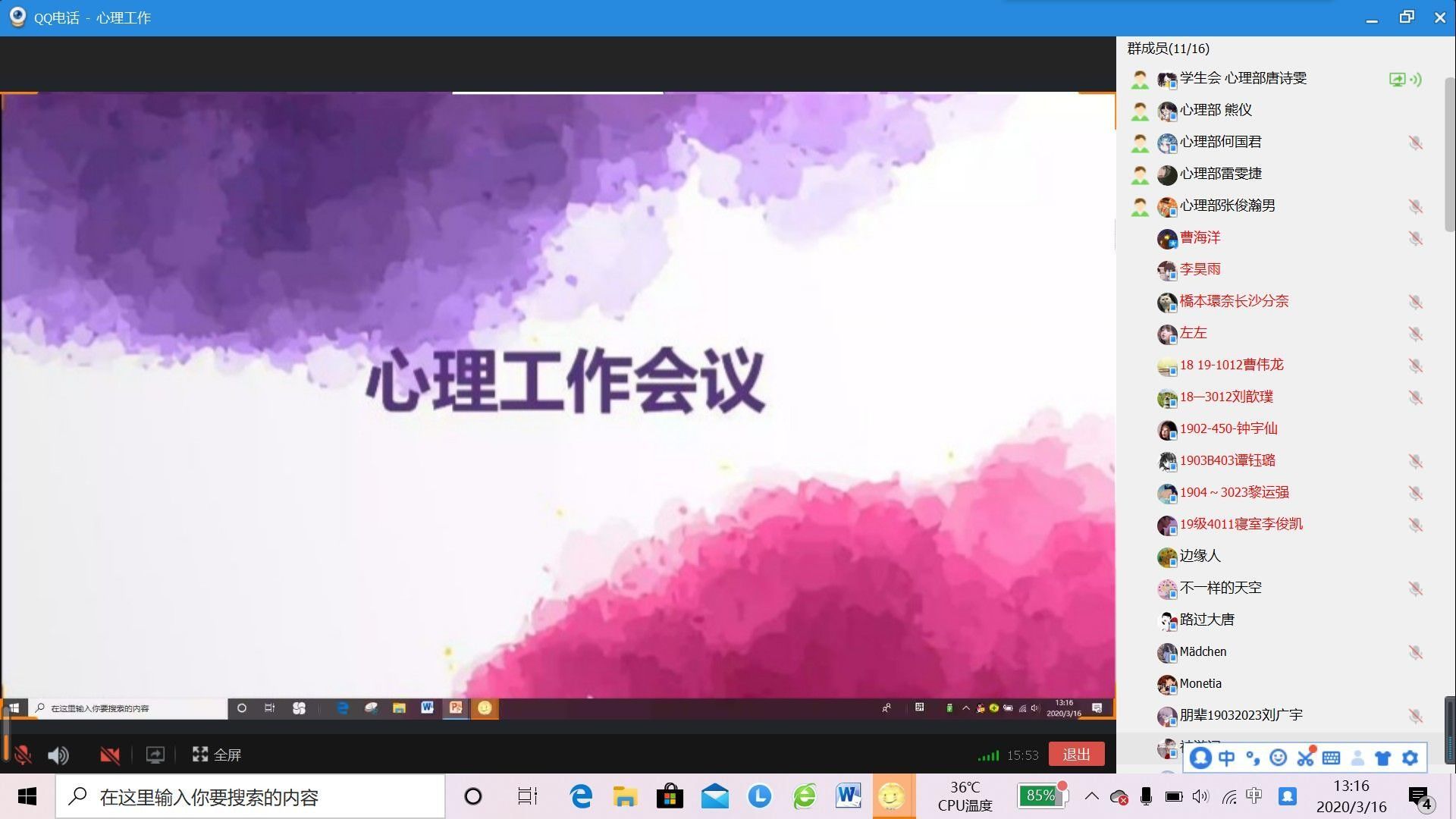 此次线上心理工作会议可以帮助心理委员与朋辈心理辅导员了解工作任务,推动心理部各项活动的开展;也有效提高了同学们在疫情期间,对心理健康的重视程度。