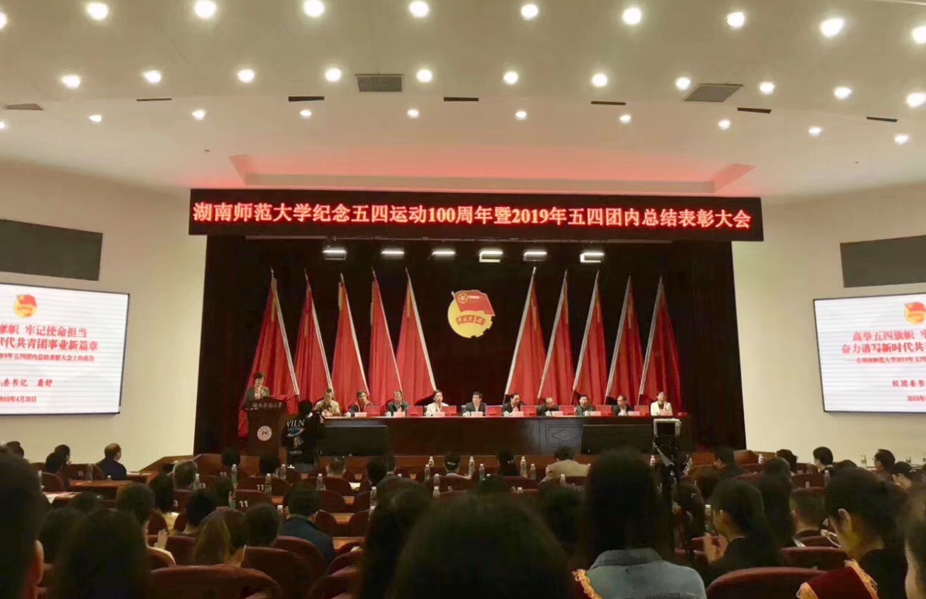 (通讯员 姜隽姝 王璐)4月30日上午,湖南师范大学纪念五四运动100周年暨2019年五四团内总结表彰大会在国际学术报告厅召开,校党委副书记、校长蒋洪新出席大会。在此次表彰大会中,历文院团委荣获2018—2019年校“红旗团委”,“文博使者”项目获校十佳“校地合作·区校共建”示范项目,觅美工艺社获校“十佳志愿服务团队”。陈敏获校“十佳共青团先进工作者”,章海晨获校“十佳共青团干部”,马一帆获校“十佳团支部书记”,张鑫获校“十佳创新创业标兵”,苗润雨获校“十佳学习尖子”,胡宇获校“十佳青年志愿者”。