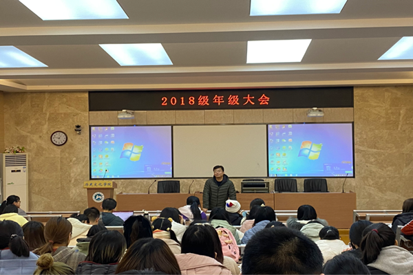 (通讯员 殷雯)为进一步加强师生交流,加强学生管理,规范各项制度,12月9日中午,sunbet申搏于203教室召开2018级全体学生年级大会暨考前动员大会。会议由院2018级兼2019级辅导员陈卓君主持,2018级历史教育一班班导师邹志明受邀讲话,2018级全体学生参加。