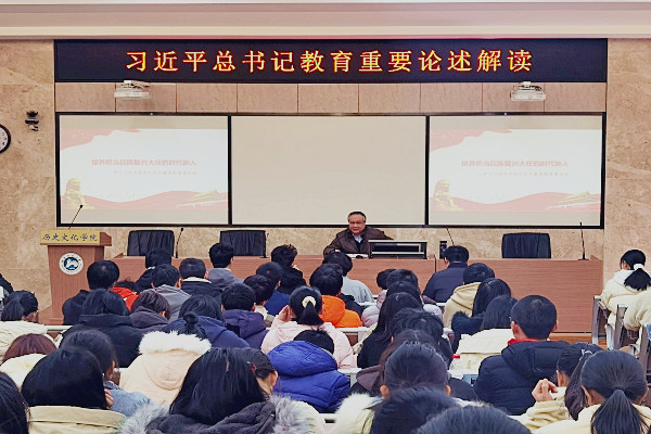 (通讯员 宋格非)1月4日下午,sunbet申搏2020级学生于学院203报告厅开展以“习近平总书记教育重要论述解读”为主题的大一学年第三次“形势与政策”课程讲座。此次讲座由历文院学工办老师周冲主持,湖南师范大学党委委员、副校长欧阳峣担任主讲人,2020级全体学生参加。