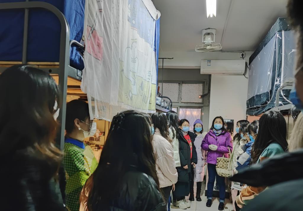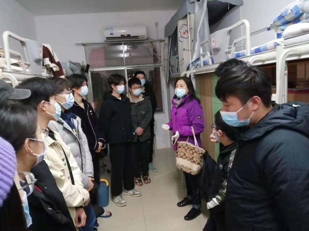 在与同学们交流过程中,老师们亲切慰问同学们的生活学习情况,表示有任何困难都可以向老师们反映。马欣书记向同学们强调了学校疫情防控要求,坚持做到“日报告,零报告”,叮嘱同学们戴好口罩,坚持“宿舍-学院”两点一线,不得擅自离校。坚持每天健康码、行程码打卡和晚归情况汇报制度,严格遵守学校各项规章制度,大家齐心协力,共克难关,坚定打赢疫情防控阻击战的信心和决心。