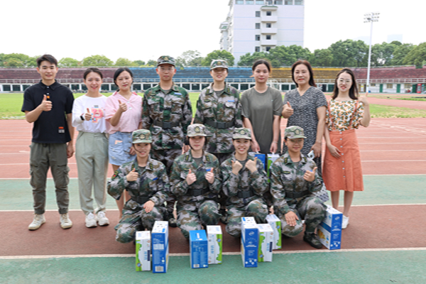 (通讯员 李想)8月24日上午,历文院党委副书记马欣带领学工办全体成员前往二里半操场对教官致以慰问。老师们到达后,为教官们送上表示慰问的营养品,了解教官训练的基本情况并热情赞扬了教官们在烈日炎炎下依然刻苦操练,提升自我的精神。马欣表示,历文院虽人员规模不大,但各位教官都是优中选优的考核后留下来,能够一路坚持下来,堪称表率,值得鼓励和表扬。此次活动展现了历文院领导老师们关心、体恤学生的人文关怀,激励教官更有信心、有动力做好接下来的新生军训工作。