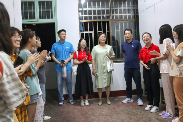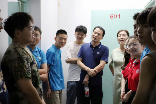 孔春辉先后在新生报到点及学生宿舍了解情况。她十分关心寝室设施安全问题,要求辅导员及时联系相关人员尽快整改到位,并给予同学们一些生活上的建议。孔春辉亲切叮嘱同学们如果在今后的学习生活中遇到困难,一定要及时向学院或辅导员反映,学院将尽全力解决,为同学们营造一个良好的生活和学习环境。钟声在宿舍与同学们进行了亲切交谈,仔细询问了同学们到校后的适应情况,了解他们家乡与专业有关信息,希望同学们做好学习规划,以饱满的精神迎接新阶段的大学生活。马欣着重与省外生源及少数民族同学沟通,希望大家互相帮助、友好相处,尊重少数民族同学的民族习惯,并强调军训期间的注意事项。