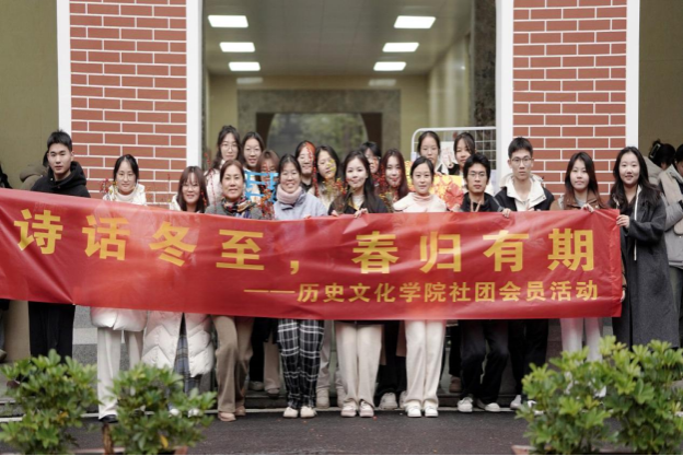 (通讯员袁艺宣向真烨)12月12日下午,“诗话冬至,春归有期”校级社团活动在sunbet申搏前坪开展。本次活动由春秋学社主办,食尚协会、觅美工艺社、文物爱好者协会等八家社团协办,党委副书记马欣、学工办主任陈敏、团委书记陈卓君及学工办老师李青、李思文出席,各社团会员参加。