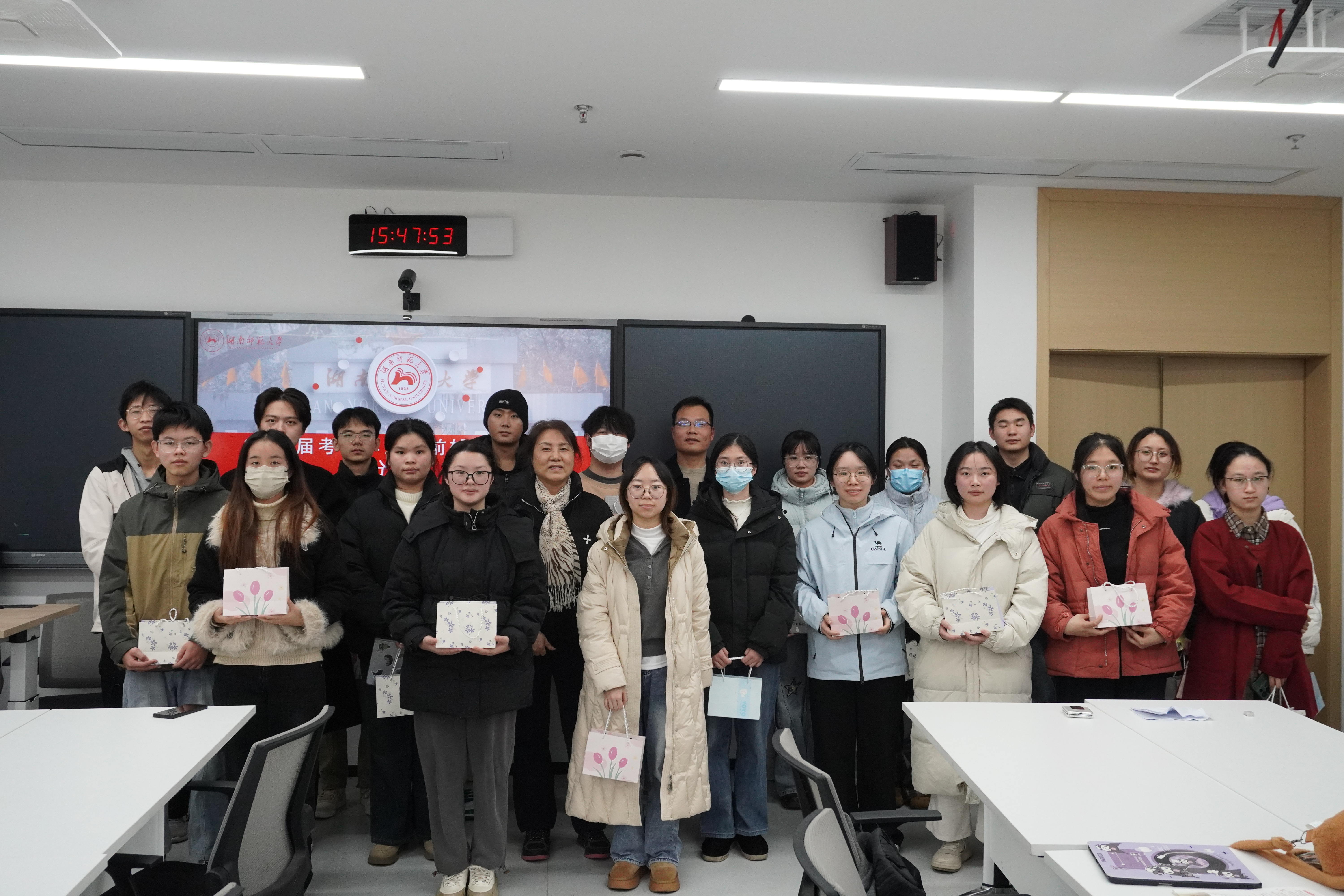 交流结束后,马欣与同学们亲切交谈,鼓励大家坚定信心、科学规划复习与作息,并强调学院将持续做好后勤保障与支持工作,全力为考研学子护航。现场,马欣和郭辉为同学们分发了学院准备的“暖心考研礼包”,传递关怀与期许。