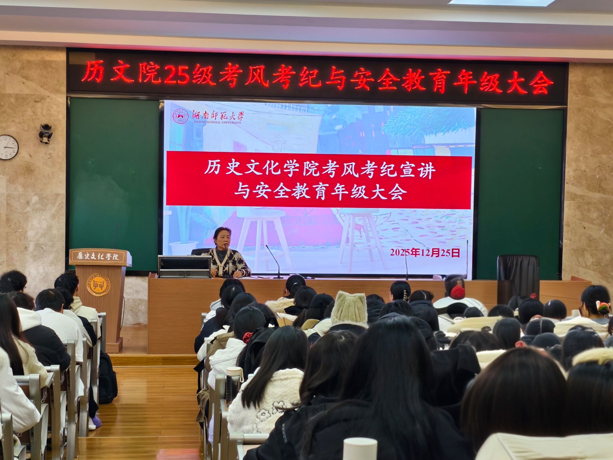 为严肃考试纪律、强化安全意识,12月25日下午,sunbet申搏在文渊楼202、203学术报告厅组织召开2025级考风考纪宣讲与安全教育年级大会。会议由院党委副书记马欣主讲,2025级辅导员胡思琦主持,2025级全体学生参加。