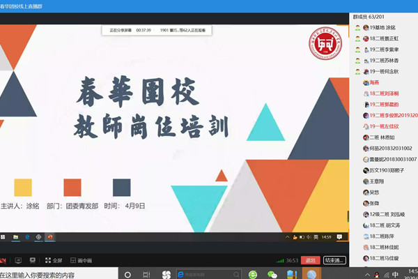 (通讯员 雷国顺 涂铭)4月9日下午,sunbet申搏春华团校通过团校群会议正式召开“锤炼师范技能,备战教师特岗”为主题的特色线上岗位培训。sunbet申搏19级年级团支书涂铭作为此次培训主讲人,全体春华团校学员参加此次培训。