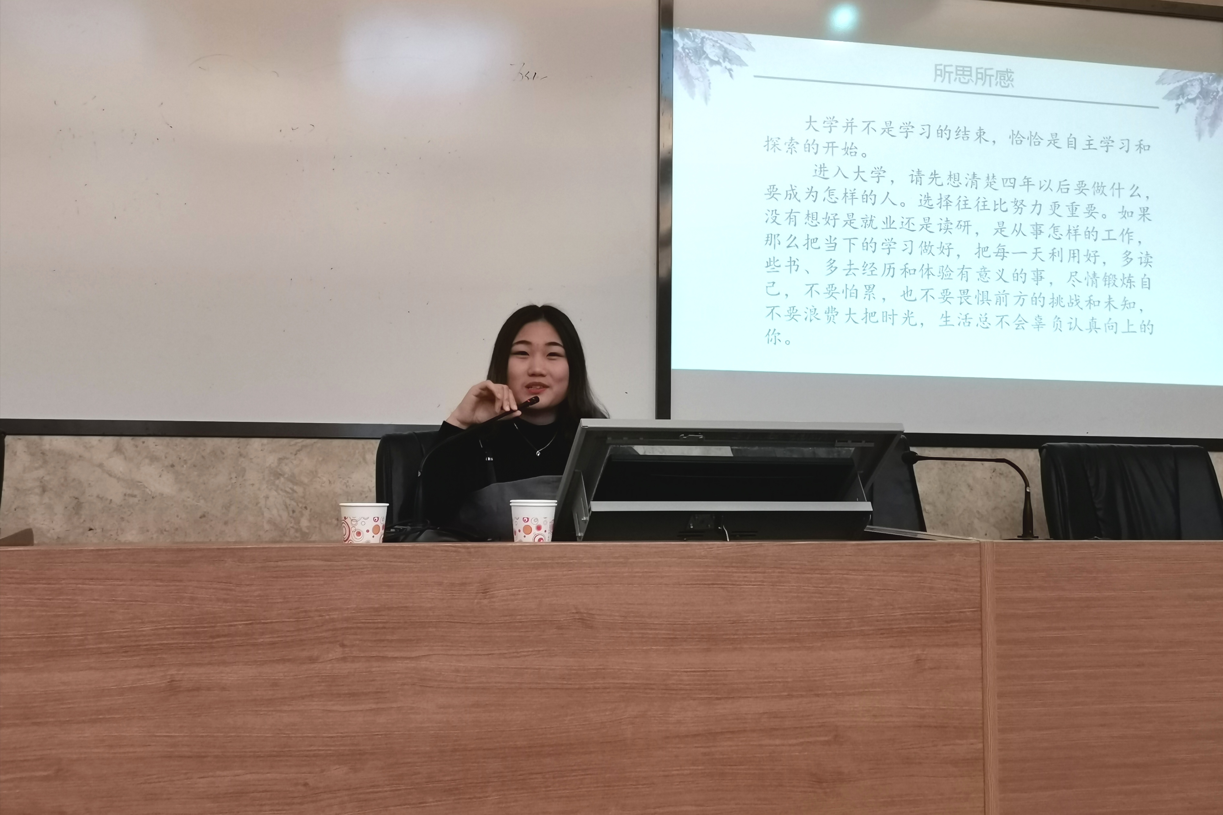 在此次交流会上,活动主办方邀请到了来自2016级的苗润雨、张佳傲和陈晓作为此次交流会的主讲人,来为参加成员分享学习经验、保研心得。首先,苗润雨从历史教育班的保研情况出发,向19级历史教育班的学员详细介绍了学院对于教育班的培养方案及今后的就业方向,她也就自己的学习方法和经验做了阐释与分享。接着,张佳傲重点介绍了历史基地班保研和考研的近况,并就其个人具体的学习方法做了详细介绍。最后,陈晓向19级文化产业管理班的学员介绍了文化产业管理专业的涉及内容和发展方向,并向19级文化产业管理班的学员强调了文化产业管理这六字蕴含的意义。