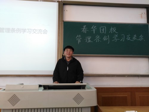 (通讯员 王彧之 周爽)11月29日中午,由历文院团委青年发展工作部主办的春华团校管理条例学习交流会在院310教室开展。此次会议由院团委学生副书记胡宇和院团委青发部部长王彧之主讲,2017、2018级部分春华团校学员参与。