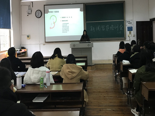(通讯员 符涛 姜隽姝)3月13日中午12时许,历文院青年传媒中心主办的新闻写作培训会在文学院大楼举行。此次新闻培训活动由我院青年传媒中心院网工作站站长李旦主讲,各年级宣委及全体青传干事参加。