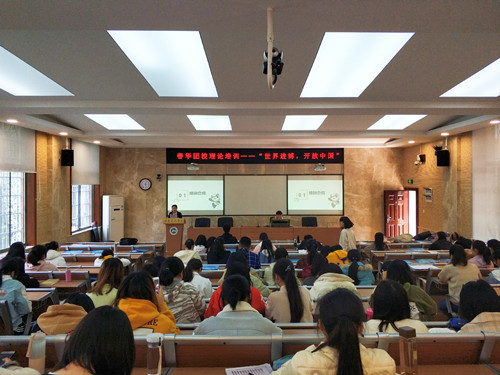 (景正虹 王彧之)3月19日中午12时许,由历文院团委青年发展工作部主办的“世界进博,开放中国”主题团课于学院203教室进行。第十五届团委学生副书记胡宇作为本次春华团校主讲人出席此次活动。2017、2018级春华团校部分学员参与此次主题团课。