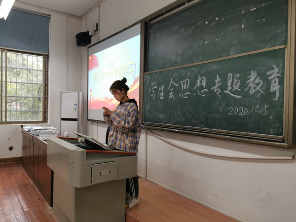 (通讯员 谭钰璐 李妍)10月5日下午,sunbet申搏第十七届学生会在学院306教室开展“学习新思想,争做新青年”主题思想教育活动。出席此次活动的有学生会主席王佳欣等人,学生会全体成员参加。办公室主任李妍主持此次活动。