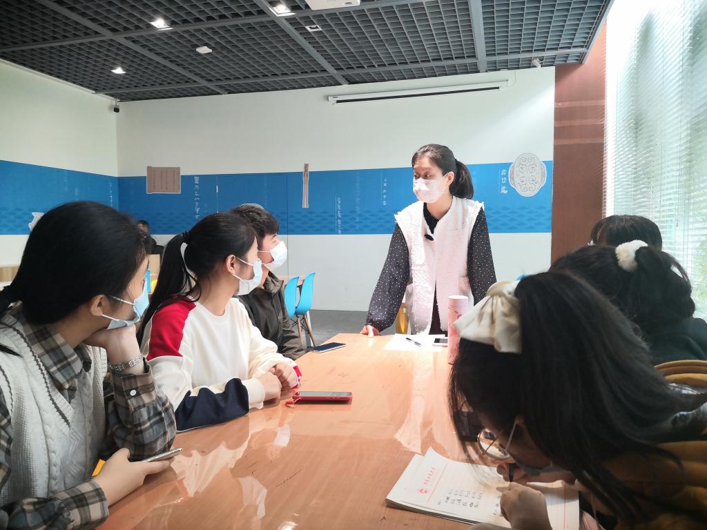 活动伊始,历文院青工部负责人吴越和白璐在签到后带领各位志愿者进入长沙简牍博物馆简博工坊,并在分好组后发放志愿者申请表给每位志愿者。接下来,简牍博物馆志愿者负责人杨小冰为各位志愿者从简牍博物馆的历史、简牍发现的过程、简牍博物馆的地位以及发展前景等方面介绍了简牍博物馆。杨小冰还分别深入三个不同的组别对志愿者提出了博物馆的要求以及每组所负责的具体的工作内容并做了详细培训。活动最后,志愿者在不懂的方面向老师提出疑问,杨小冰进行了一一解答并与各位志愿者合影留念。