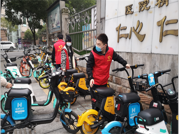 活动初期,社区负责人给志愿者讲解活动的社会背景与目的,以加强志愿者对该活动的了解,并通过线上与志愿者共同讨论活动具体流程和安排。在活动过程中,志愿者总共分为3组,一组合作对人行道上乱摆放、乱占道的共享单车及电动车进行整理;一组负责把倒在草坪里的单车扶起来停放好,最后一组则将停在马路上的单车和电动车搬至停车点摆放整齐。同时,他们戴上了塑料手套,清理了单车车篮里残留的垃圾。“益湘行”活动负责人通过照片和视频记录下了志愿者的活动过程。活动结束后,负责人开展了心得交流会,志愿者就活动中的感想和收获展开了一系列讨论,同时也提出了活动中的不足和自己的建议。最后,负责人给优秀志愿者发放优秀志愿者证书,表达对他们的感谢并和所有志愿者合影留恋。