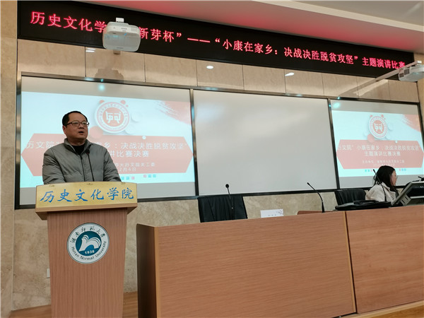 本次决赛的主题是:“小康在家乡:决战决胜脱贫攻坚”。比赛中,选手们各抒己见,富有真情实感,从以小见大的视角出发,讲述了自己家乡近些年的发展与变化,以及有关脱贫攻坚和全面小康的故事。最后,赵士国老师和彭赛丰书记也对选手们的演讲表现发表了精辟而简短的点评,五位领导老师随后也为获奖的同学颁发了奖状和小礼品。在一片掌声中,本次比赛圆满结束。