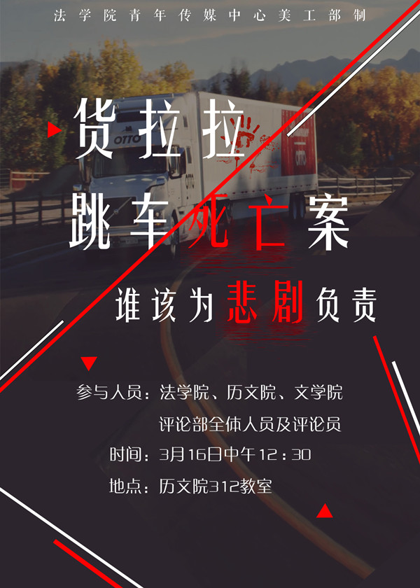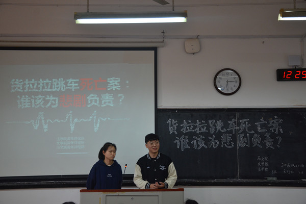 (通讯员 芦金宝)近日,货拉拉跳车死亡案引起了社会的关注,对于货拉拉跳车事件,谁该为此负责?在紧急情况下女性如何进行自救自保?面对该类复杂社会问题时,如何能做到保持清醒的认知和独立的思考。316日下午,历文院、文学院、法学院青年评论部于历文院312教室举行以“货拉拉跳车死亡案:谁该为此负责?”为主题的评论沙龙活动。此次评论沙龙由历文院邹慧玲、姚宇杰主持,历文院、文学院、法学院全体评论员及评论部成员参加此次活动。