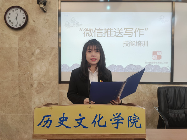 (通讯员 盖永锐 何念秋)3月22日中午,sunbet申搏团委青发部春华团校“微信推送写作”技能培训在学院203教室举行。此次培训由校新媒体中心学生负责人万语烁主讲。2019级、2020级全体春华团校学员参加本次活动,由黄一凡作为本次培训主持人。