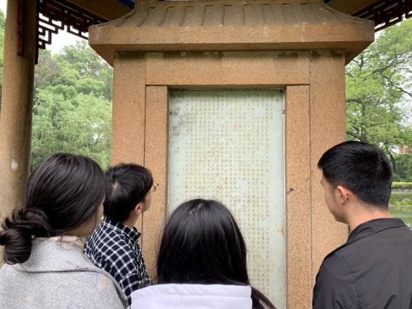 此次活动分为线上和线下两个部分,小组成员线上观看学习“四史”相关的视频资料,提前学习了解本次学习内容,线下分为“回顾历史”“参观与讨论”和“感想与总结”三个环节。活动伊始,李海瑜致开场白并展示相关资料,组织成员观看了习近平总书记讲述学习四史重要性的相关视频,并阐述了为什么要学习党史、新中国史、改革开放史、社会主义发展史,回顾了中国共产党建党100年来的峥嵘岁月以及先辈们奋斗抗争的故事。接下来组长带领大家参观岳王亭,并为大家介绍岳王亭,讲述关于岳王亭的故事。小组成员围绕这次学习“四史”的主题进行了讨论,充分表达了自己对于“四史”想法和见解,并对习近平总书记关于学习“四史”的讲话发表自己的感想。李海瑜就视频、参观和同学们的讨论对此次活动进行总结,并鼓励同学们积极投身于四史学习中去。