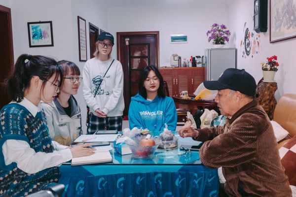 活动伊始,志愿者们前往老人家中,进行简单的自我介绍,并向老人说明此次活动的目的。此次志愿活动以采访形式进行,志愿者们会对采访过程进行音像和影像记录,后期还会将采访内容整理成绘本形式。在采访过程中,志愿者与老人友好交流,老人对志愿者们生动地讲述自己年轻时与党的故事,回忆了新中国成立半世纪以来自己日常生活的发展变化,从每天为一口吃食、一件新衣而发愁到如今不仅解决了温饱问题,生活品质在不断提升。除了讲述自己的人生经历,老人还提出了自己对于当代年轻人的几点希冀。随着采访过程的推进,本次活动在不知不觉中已接近尾声。在志愿者与老人的道别声中,活动正式结束。