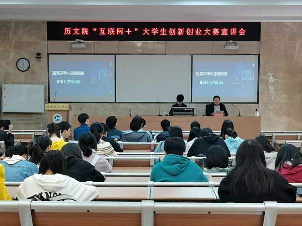 (通讯员 李昊 傅一晨)4月19日下午,“互联网+”大学生创意大赛宣讲会在历文院203教室举行,本次宣讲会由主持队龚宇峰主持,主讲人为历文院向常水副教授,18、19级部分同学及20级全体同学参加。