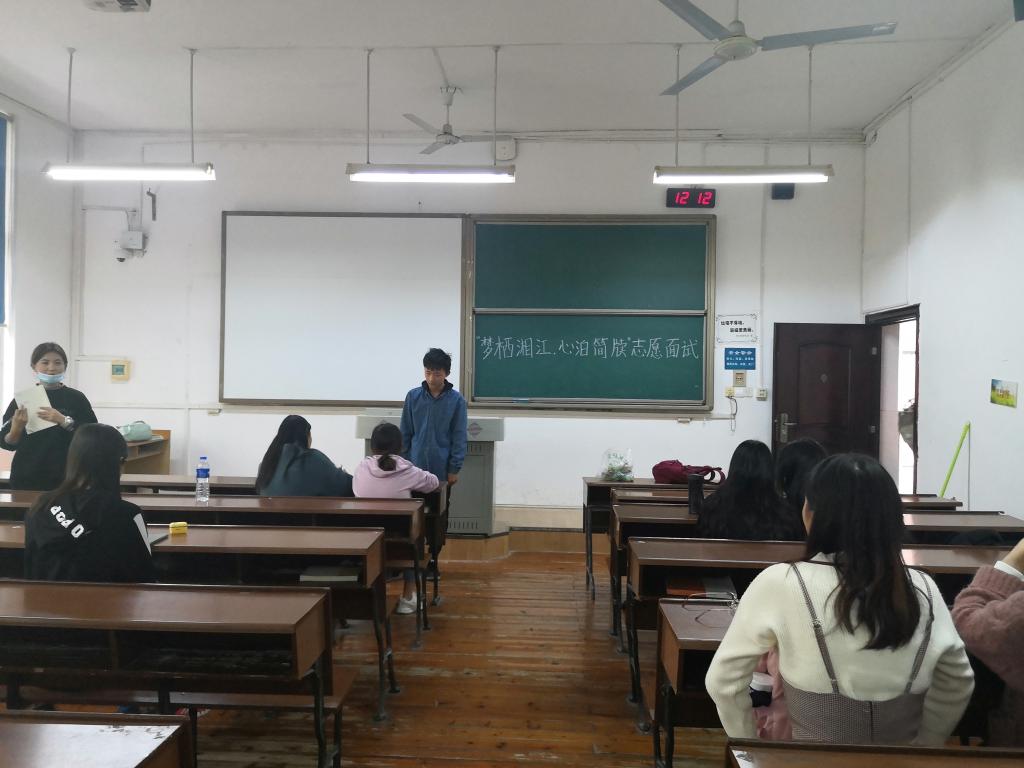 (通讯员 白璐 许瞻)10月17日中午十二时许,历文院青工部组织的“梦栖湘江,心泊简牍”面试活动于sunbet申搏305教室展开。由历文院青工部成员进行初次面试,来自全校的五十多名志愿者参加此次面试活动,通过的志愿者将会进行第二次面试培训。