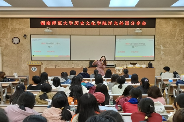 推介会伊始,唐美容灵活运用日、韩、泰等国语言进行自我介绍,撷取日、韩、法等国中引人入胜的流行文化与同学们进行交流互动,充分调动了同学们对小语种学习的积极性。随后,她通过对“复合型1+1人才”概念的阐释和日语JLPT考试的介绍,展现了“小语种加专业”学习规划的可行性。最后,唐美容将小语种学习与“一带一路”、“RCEP”等大政方针接轨,阐明了逐步深入全球化进程以来,小语种学习的重要政治和经济意义。现场气氛活跃,同学们认真听讲,参与度和积极性较高。