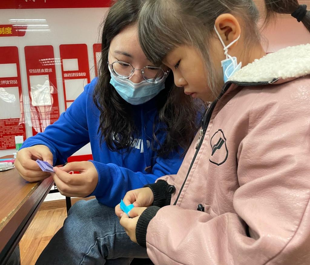 在纸伞制作环节,志愿者们耐心带领小朋友参与纸伞手工制作,回答孩子们在折纸过程中遇到的问题,在保证小朋友安全的前提下带领他们享受手工乐趣,引导小朋友们制作精美的纸伞。
