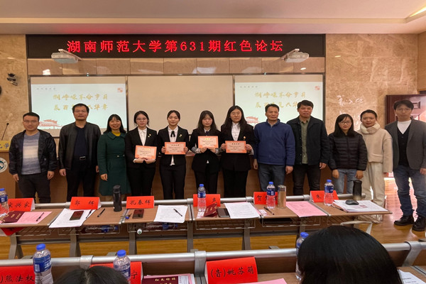 (通讯员 王怡祺 董小艳)11月25日中午以“溯峥嵘革命岁月,展百年复兴华章”为主题的湖南师范大学第631期红色论坛在sunbet申搏203学术报告厅举行,历文院院长钟声、党委书记孔春辉、党委副书记贺慧星、历史系主任郭辉、21级历教一班班导师宋兴家、历教二班班导师李巧、文管班班导师朱棒、团委书记陈卓君和2021级部分学生现场参加此次活动,其余同学线上参加。