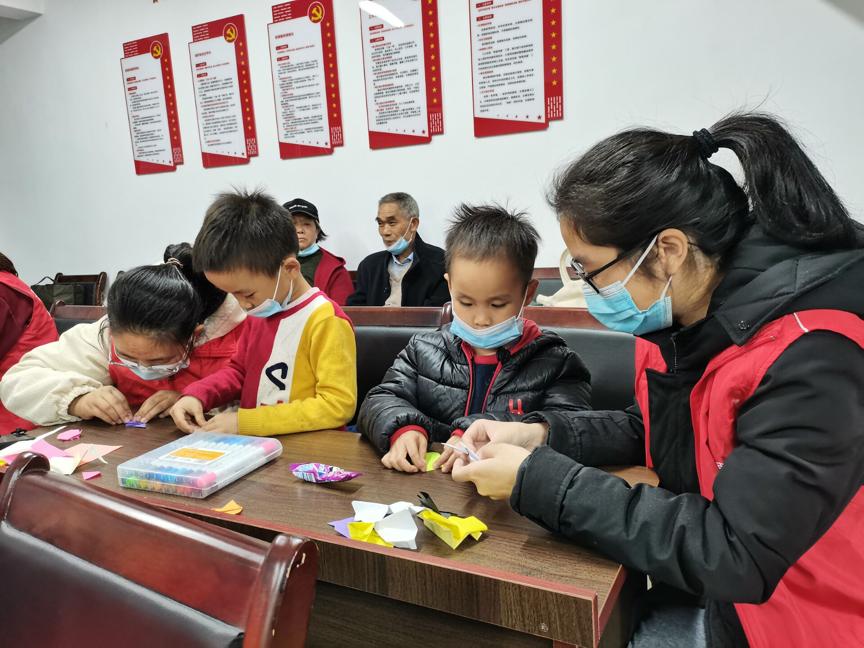 课程讲授完毕后,志愿者们配合小朋友制作十二生肖折纸,耐心指导小朋友们安全地完成手工制作,解答小朋友的相关疑问,增强了小朋友们的实践能力和团队意识。