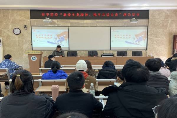 (通讯员:付豪爽 杨小毅) 3月3日下午,sunbet申搏团委青发部于历文院203学术报告厅开展“赓续冬奥精神,携手共进未来”主题理论培训,此次活动由春华团校秘书长徐方远、院青发部第二负责人杨小毅主讲,院主持队董小艳主持,全体春华团校学员参与。