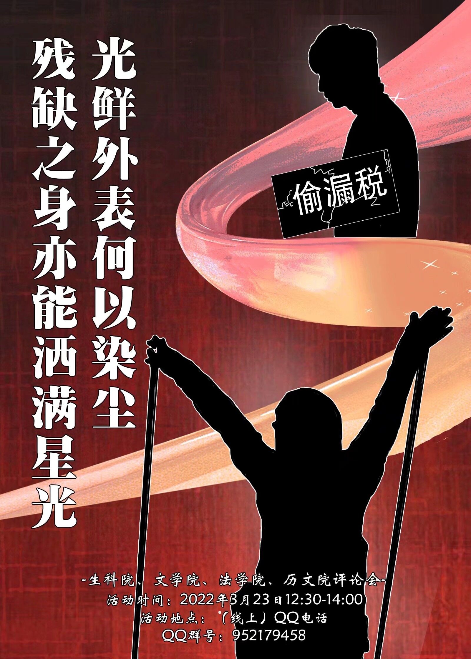 (通讯员 义秀娟)近日,冬残奥会运动员们的精彩表现和明星邓伦偷税漏税事件引起了社会关注。3月16日下午,历文院、法学院、文学院、生科院青年评论部开展以“残缺之身亦能洒满星光,光鲜外表何以染尘”为主题的线上评论沙龙活动。此次评论沙龙由喻凌峰、谢梦佳主持,历文院、法学院、文学院、生科院全体评论员,校青评网编辑参加。