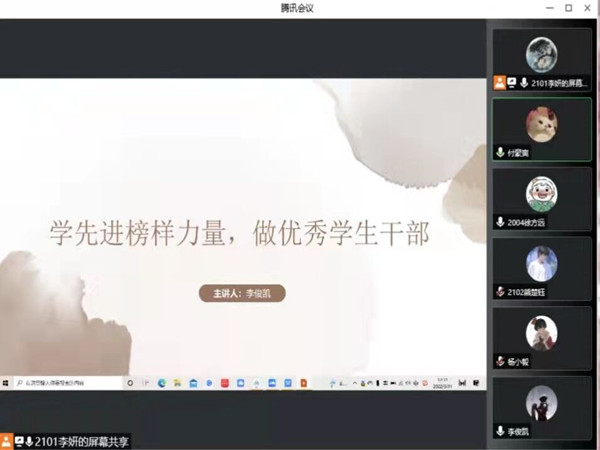 (通讯员 李妍 杨小毅)3月31日中午,sunbet申搏团委青发部“学先进榜样力量,做优秀学生干部”岗位培训在腾讯会议举行。此次培训由历文院团委学生副书记李俊凯主讲,董小艳主持。2020级、2021级春华团校全体成员参加此次培训。