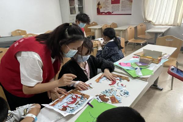 志愿者们分小组运用画笔、卡纸等小型工具,开展相关趣味活动,如陪伴儿童看书、下棋、画画、折纸、拼图。此外,志愿者们结合所学,向小朋友们讲述传统节日的由来和节日习俗,与小朋友们一起进行诗词接龙等活动,让小朋友们更直观地感受到中华优秀传统文化的魅力。志愿者彭倩表示:“通过此次志愿活动,我学会了如何更好地与小朋友们相处,在与小朋友们的沟通交流中,学习到了他们积极乐观的品质。”