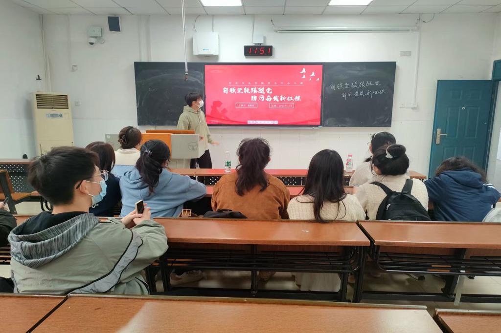 此次活动主要围绕深入学习贯彻党的二十大精神开展。梁程炫从奋进新征程等方面阐释活动主题,并展示小组成员户外实践成果。随后,王怡祺组织全体成员观看学习党的二十大精神宣讲视频。接着,李艾作为组员代表分享了学习心得。活动尾声,梁程炫表示,同学们应在学习生活中,深入贯彻党的二十大精神,坚定理想信念。