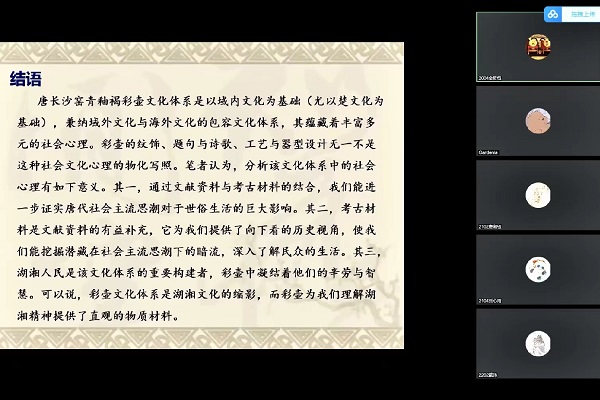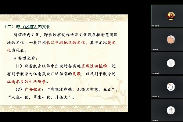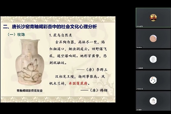 此次讲堂主讲人金哲恺介绍了唐长沙窑青釉褐彩壶文化体系的内涵、构建及其构建因素,再通过分析彩壶的纹饰、题句与诗歌、工艺与器型设计的物质表征,挖掘唐长沙窑青釉褐彩壶文化体系背后的社会文化心理,在此基础上分析其社会文化心理的特点及成因。此次讲堂由彩壶文化体系推及到湖湘文化,彩壶文化体系是湖湘文化体系的缩影,而彩壶为我们理解湖湘精神提供了直观的物质材料。