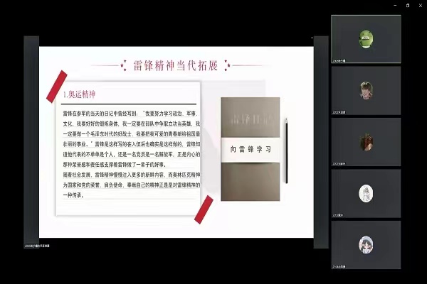杨予曦主讲的内容为新时代下雷锋精神的价值意蕴及传承路径。她表示,雷锋精神是不断变化发展着的,并随着时代的进步被赋予更丰富的内涵。作为新时代的大学生,我们应当积极学习、传承、践行雷锋精神,深刻把握雷锋精神的时代内涵,让雷锋精神在新时代绽放更加璀璨的光芒。