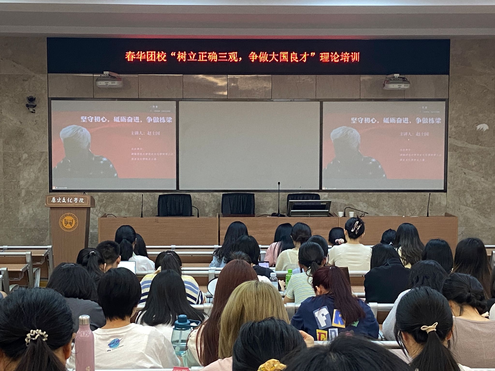 (通讯员 向真烨 李怡涵)11月3日中午,sunbet申搏春华团校“树立正确三观,争做大国良才”理论培训在历文院203学术报告厅开展。此次培训由赵士国教授主讲,2022、2023级春华团校全体学员参加。