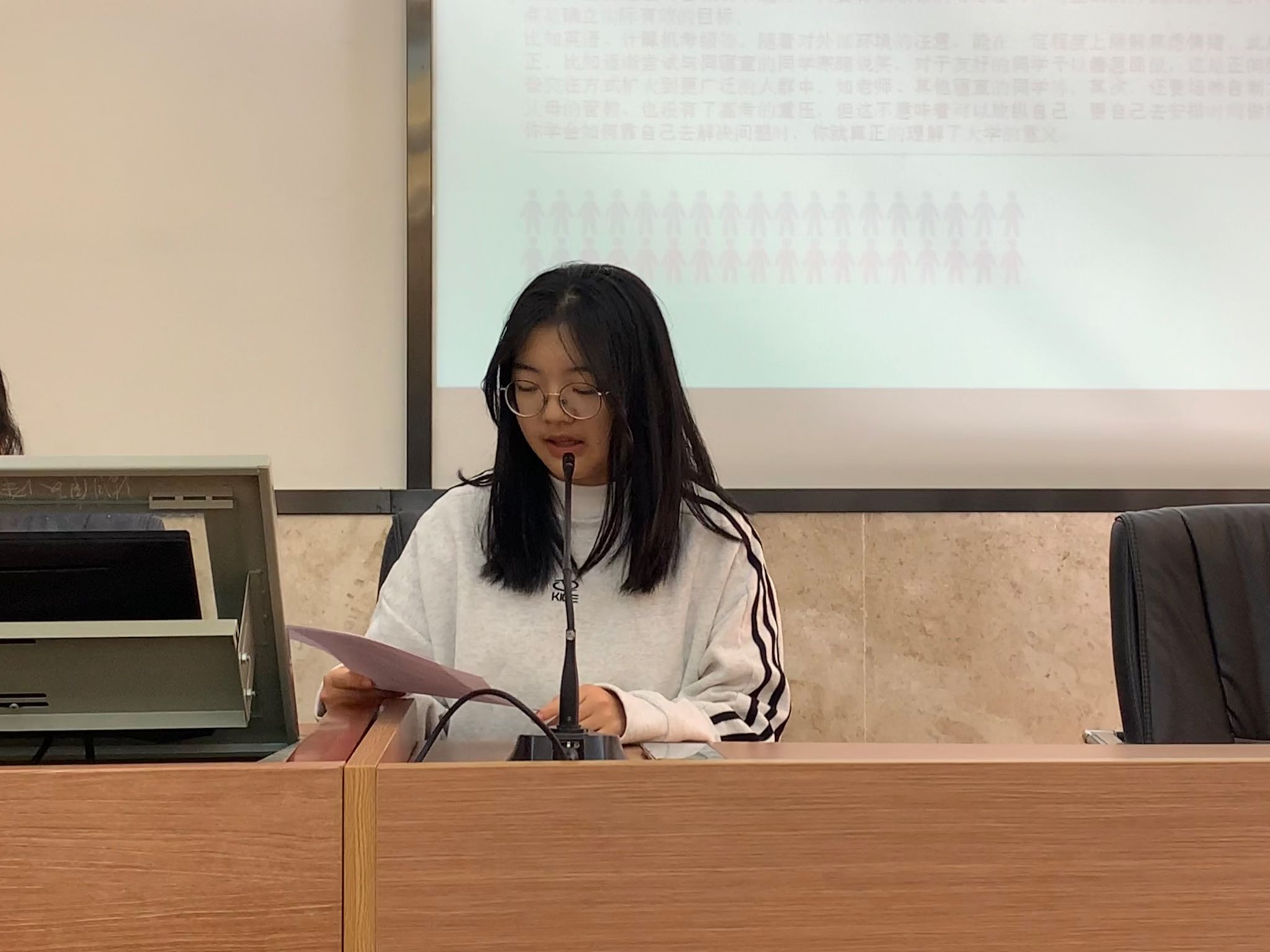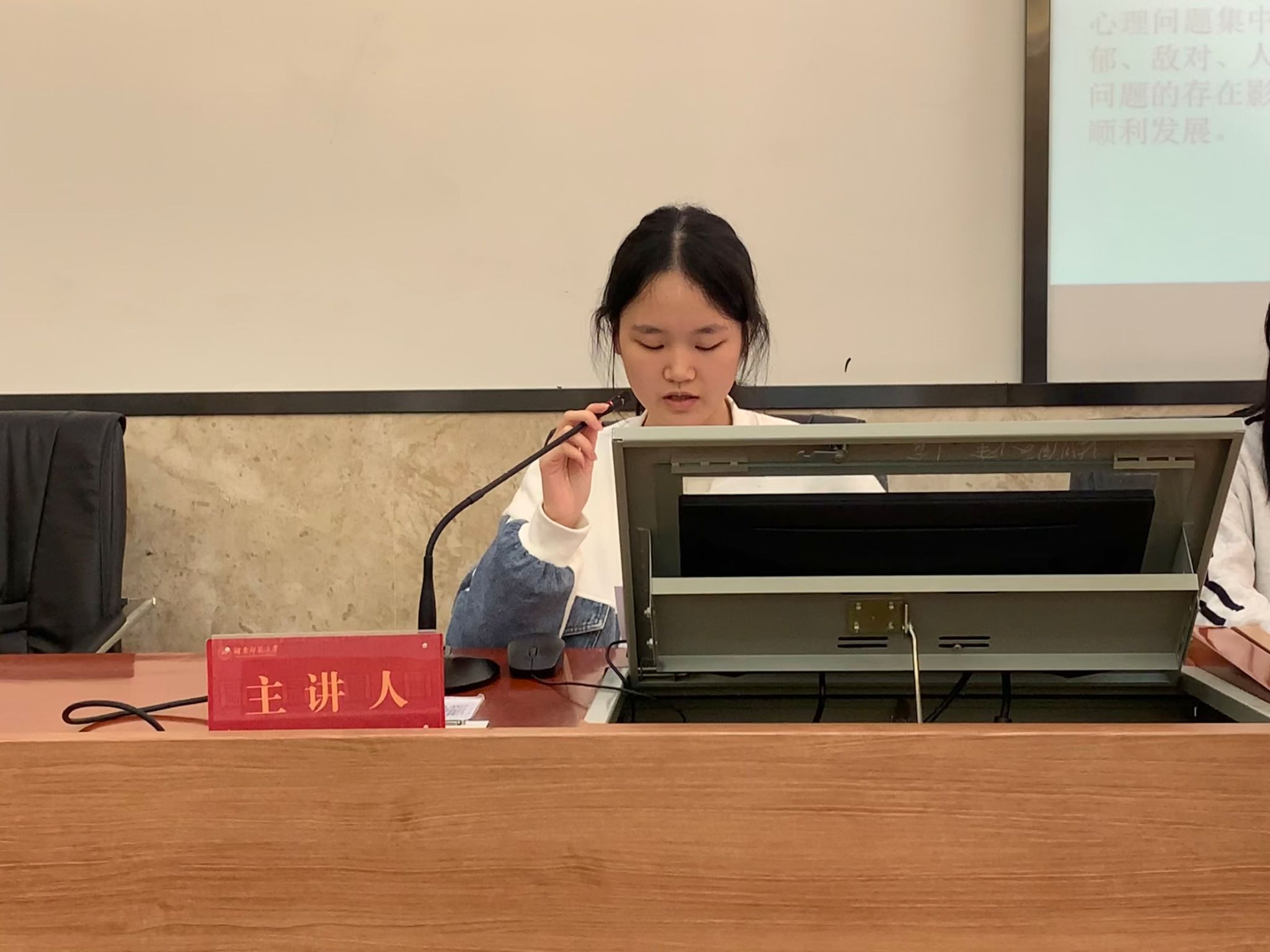 首先,高晶通过具体的案例向同学们介绍了当前大学生常见的心理问题、大学生心理问题产生的原因等方面内容。随后,姚丁方结合大学生心理特点,分享保持良好心态的方法。她强调,大学生应当关注和重视自身心理健康状况,保持规律作息,加强体育锻炼,养成健康的生活习惯,做自己心理健康的第一责任人。