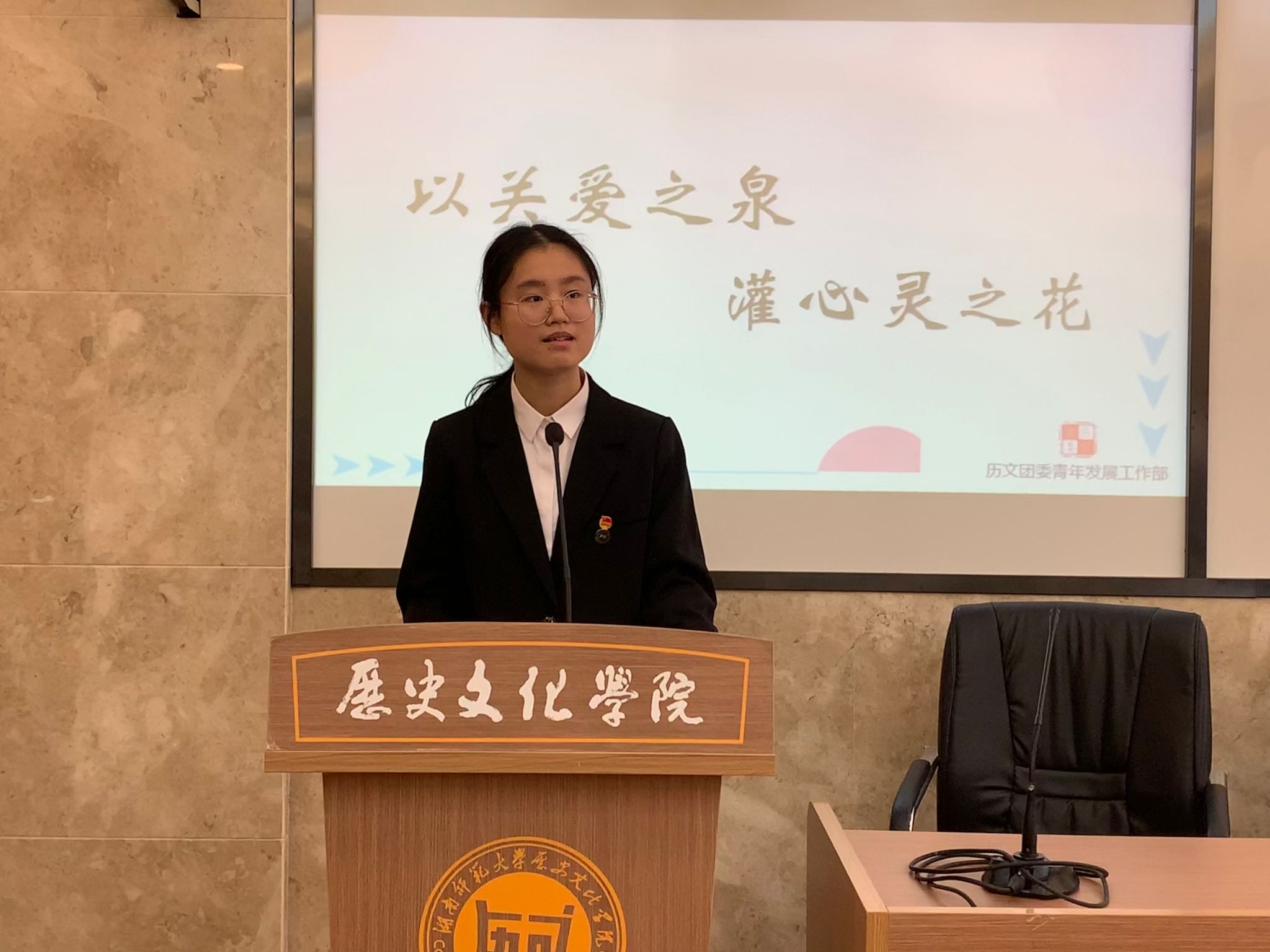(通讯员 向真烨 高晶)11月24日中午,sunbet申搏春华团校“以关爱之泉,灌心灵之花”技能培训在历文院203学术报告厅开展。此次培训由院团委青发部第二负责人高晶、实践部第二负责人姚丁方主讲,春华团校全体学员参加。