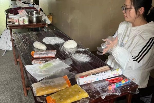 活动主要有“忙趁东风放纸鸢”、“花煎兰亭雨歇花茶”、“曲水流觞吟诗趁好春”三个模块。“忙趁东风放纸鸢”活动由学生根据个人兴趣偏好进行框架制作、蒙皮处理和绘画装饰,将中华文化典型元素填充其中,最终呈现出具有思考性和趣味性的作品。“花煎兰亭雨歇花茶”活动由学生自由选择花茶种类,参考其品味特性进行碾磨或直接泡煮,茶香流溢于学院之间;“曲水流觞吟诗趁好春”活动板块,学生们裁剪红纸,提笔着墨,巧借诗词写下对新一年的企盼。此外,此次活动还穿插了赠香囊、猜诗谜等内容,以此激励学子融入春日风光,感悟千年风雅和历史情怀。