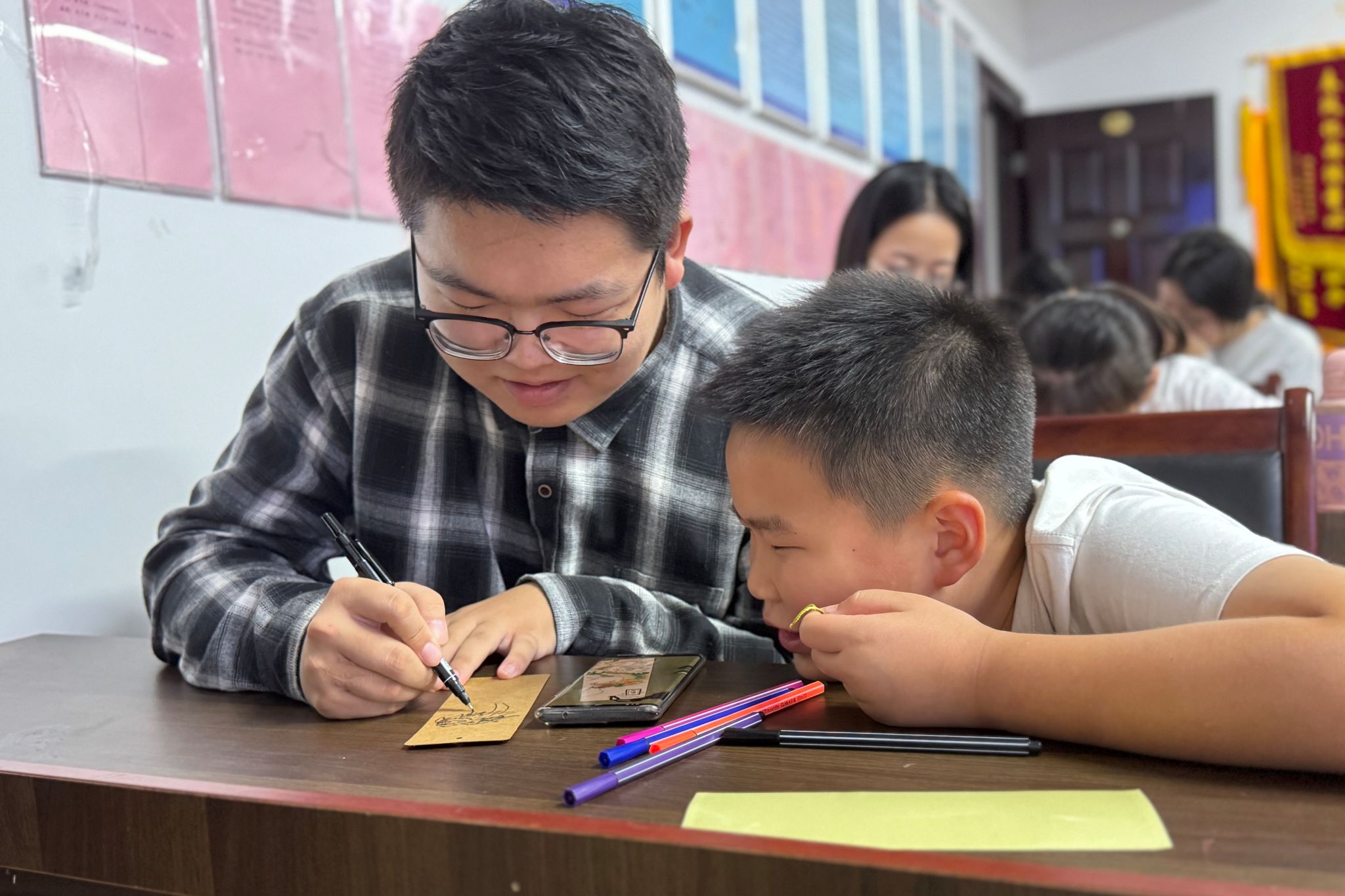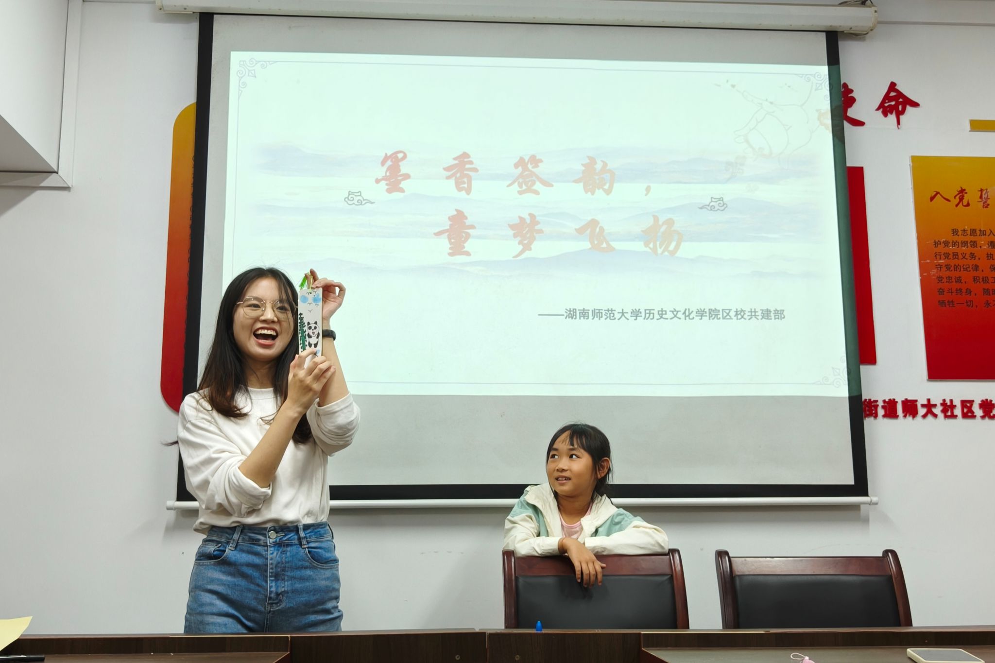 (通讯员 宋嘉怡 唐珂)10月20日下午,为激发阅读兴趣,提高师大社区儿童的动手能力,sunbet申搏区校共建部在师大社区党群服务中心开展“墨香签韵,童梦飞扬”志愿服务活动,历文院志愿者与社区小朋友们共同参与。