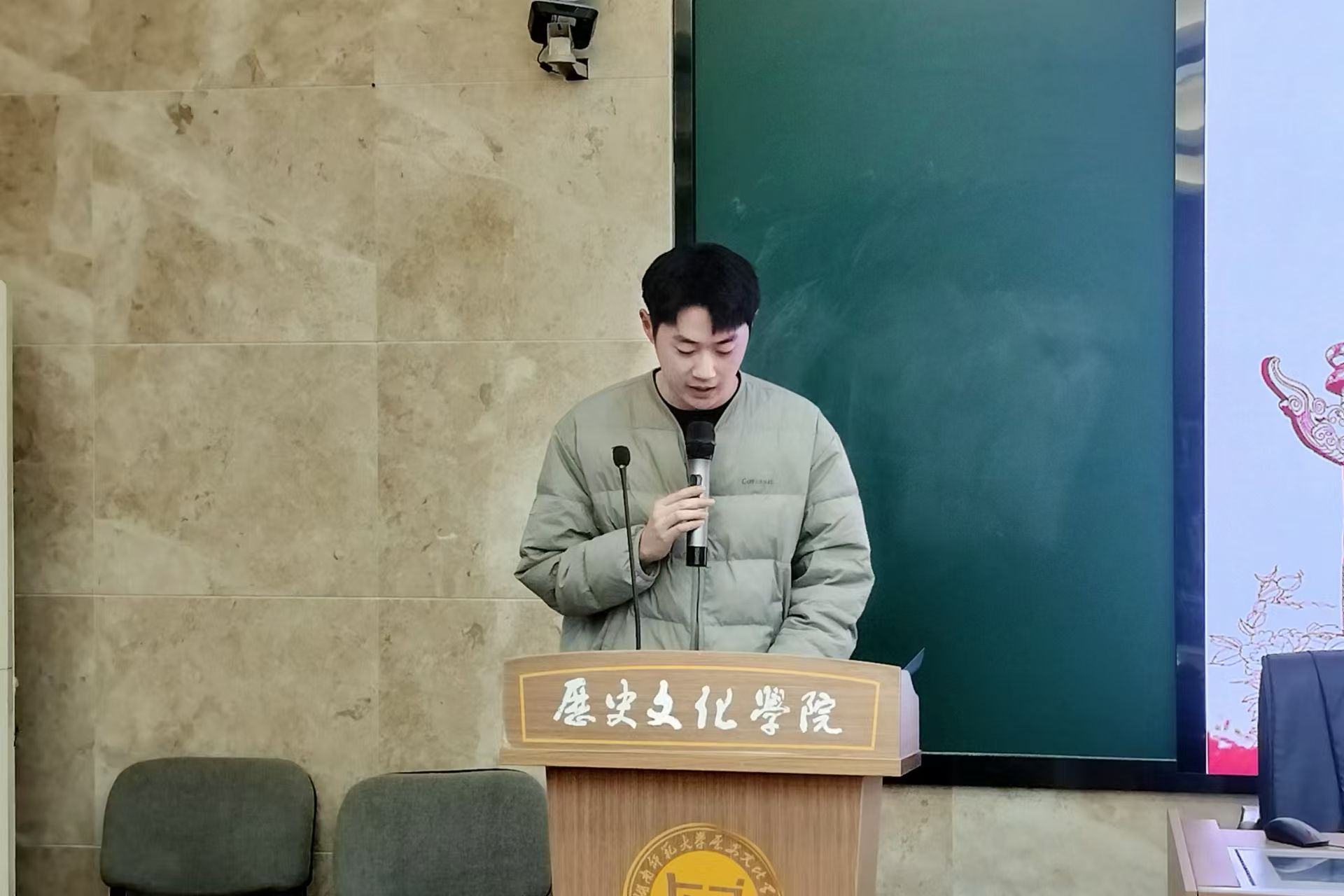 历文院四大社团团支书根据自身社团特点,依次从组织建设、宣传建设等多个方面进行相关介绍和说明。食尚协会着重介绍了校级活动晚安令、第三期光盘行动以及上巳节活动内容,合唱《夜空中最亮的星》;觅美工艺社以往期活动为牵引,重点介绍“学习雷锋精神,细嗅助人余香”、“纸上生花,定格春光”等志愿实践活动,展演手势舞加情景剧《有我》;春秋学社以古诗词串联社团介绍,分享“寻春觅芳,相邀绘墨”活动内容,合唱歌曲《上春山》;文物爱好者协会演唱歌曲《新世界》;四大社团进行联合表演歌舞《棠梨煎雪》,充分展现出各社团的精神风采。最后,何昊进行活动总结,就此次活动的顺利开展表示肯定,并对各社团未来工作提出要求和期待,希望各社团能够持续进步、不断创新,共同书写更加辉煌的篇章。