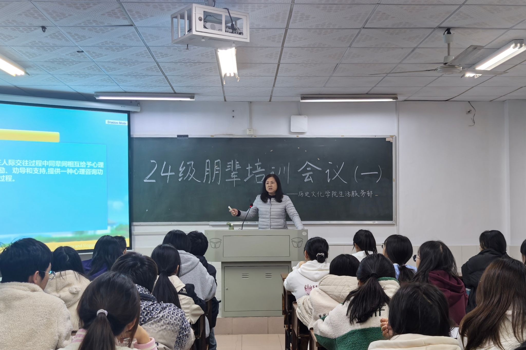 (通讯员 唐灿 张梓菡)11月21日晚,sunbet申搏于张公岭校区综合楼504教室举办2024级朋辈心理辅导员第一次培训会议。此次培训由历史文化学院党委副书记马欣主讲,全体2024级朋辈心理辅导员参加。