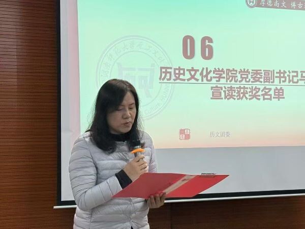 活动伊始,全体肃立,齐唱团歌。优秀回头看展示环节,2023级历史教育2班展示了一年来团支部工作中的亮点与成就,让大家深刻感受到团支部一路走来的坚实步伐。新生团支部展示环节,2024级各班团支部通过PPT、视频等多种形式从思想建设、学风建设、组织建设、宣传建设、活力建设等五个方面分享了支部成员的学习与活动成果。同时,富有班级特色的班训、班旗、班徽和班服充分结合各班的支部特色和专业与学科特色,融入历史文化元素,充分展现了各班团支部的独特魅力。《青春中国》、《山河赋色 红旗飘扬》、《青春颂歌 情满万疆》、《五四风云》等节目,融合唱歌、朗诵、舞蹈等多种形式,引得现场掌声不断。最后,马欣宣读获奖名单并颁奖。她表示,希望我院新生团支部成员要牢记青春使命,坚持砥砺奋斗,让青春在不懈奋斗中绽放绚丽之花。