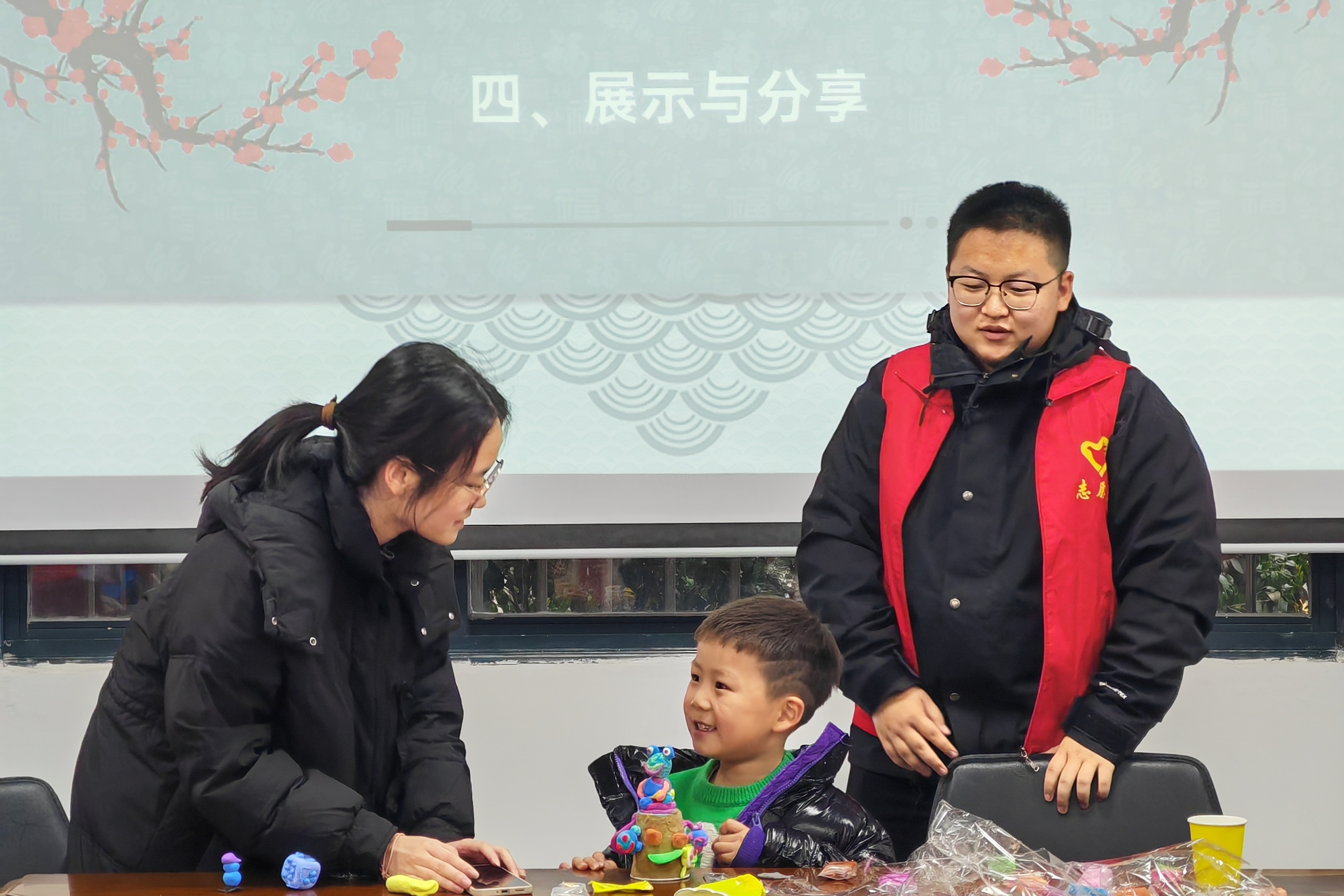 在活动过程中,志愿者代表借助PPT展示宁乡炭河里博物馆的青铜器图片,系统地向孩子们讲解了炭河里遗址的历史及青铜器的铸造工艺,并重点介绍了青铜编钟的制作流程。孩子们利用橡皮泥和纸杯制作出仿青铜编钟的创意作品, 并依次上台向大家 分享自己的创作思路。活动结束后,志愿者们组织清理场地并进 行集体合影留念。