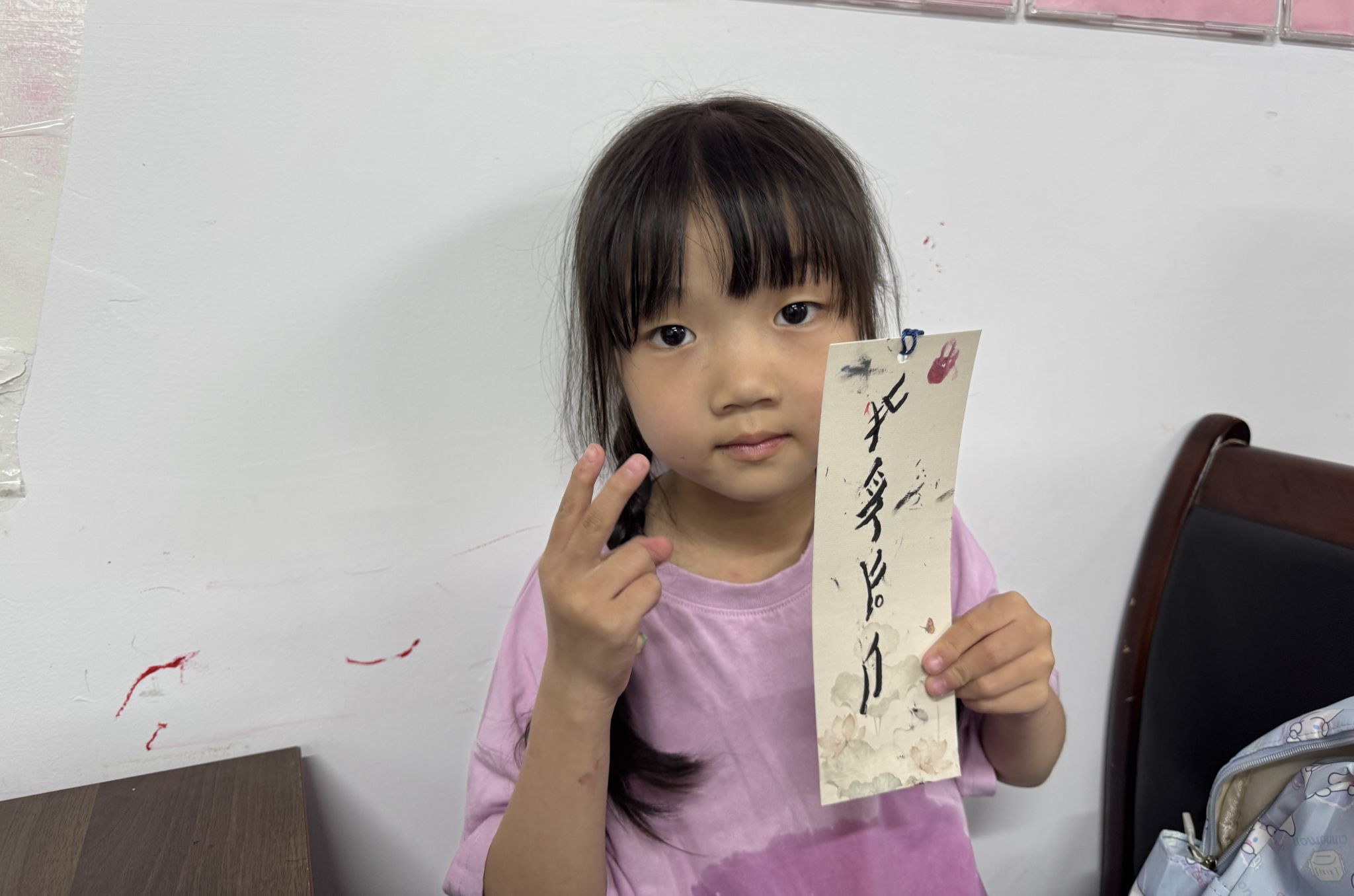 活动初始,志愿者代表通过展示江永风光,引出面临传承危机的江永女书,让参与者对女书所处地域及文化背景有了初步印象。志愿者代表从“女书基础知识”、“女书特点剖析”、“女书意义探寻”、“女书在现代的境遇与突围”等方面对女书进行介绍,激发孩子们对女书及其书写的兴趣。在女书书签制作环节,孩子们在志愿者的引导下充分挖掘女书之美,制作出各具特色的女书书签。活动结束后,志愿者们引导孩子们有秩序地完成签退流程,共同清扫活动现场,并于社区门口合影留念。