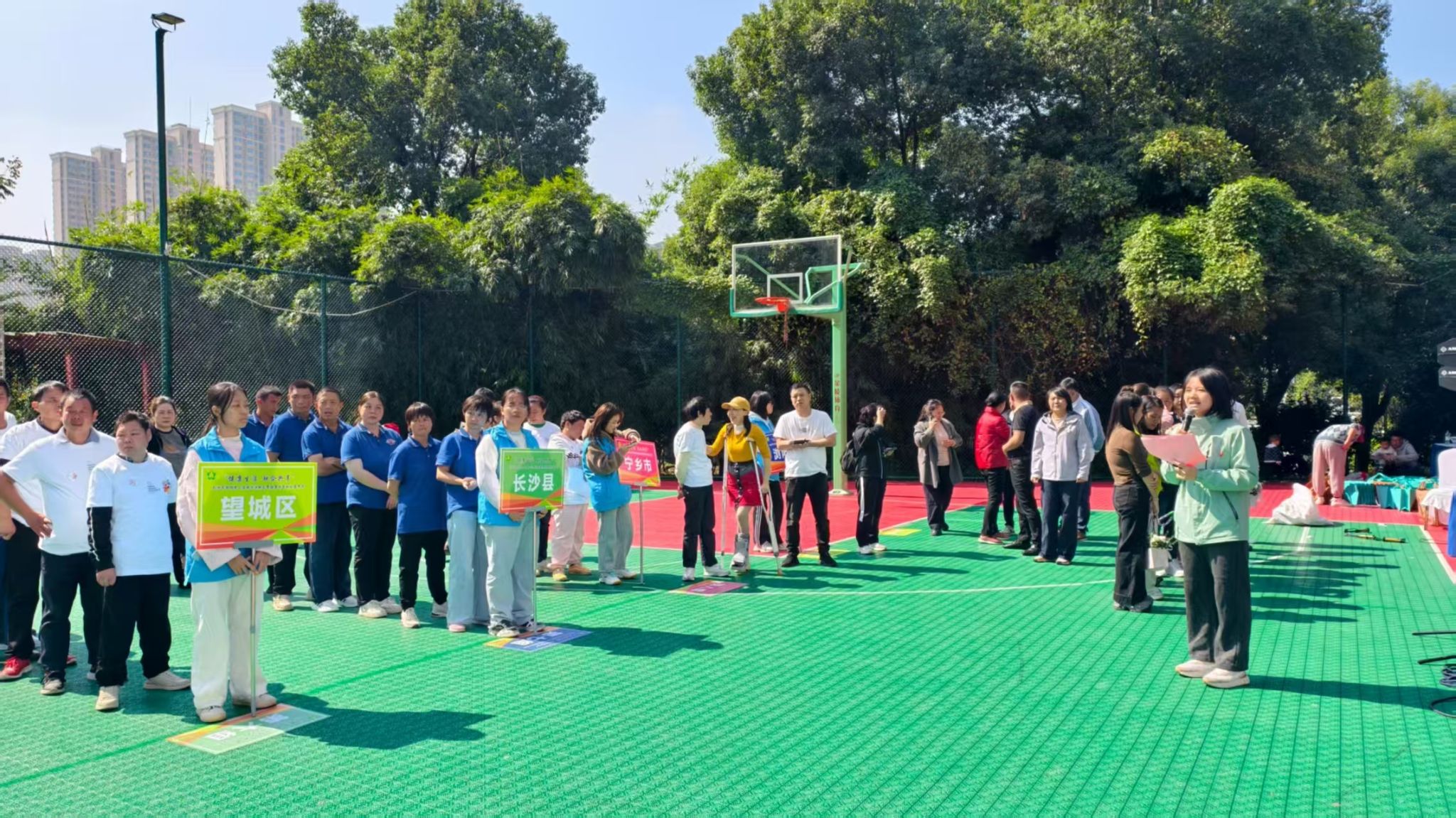 (通讯员 朴阳 杨筱煜)10月24日上午,sunbet申搏青工部与长沙市智力残疾人及亲友协会联合承办的“志愿汇爱,运动暖心”趣味运动会志愿服务活动,在岳麓区观沙岭街道篮球场顺利举行。此次活动共12名志愿者参加。