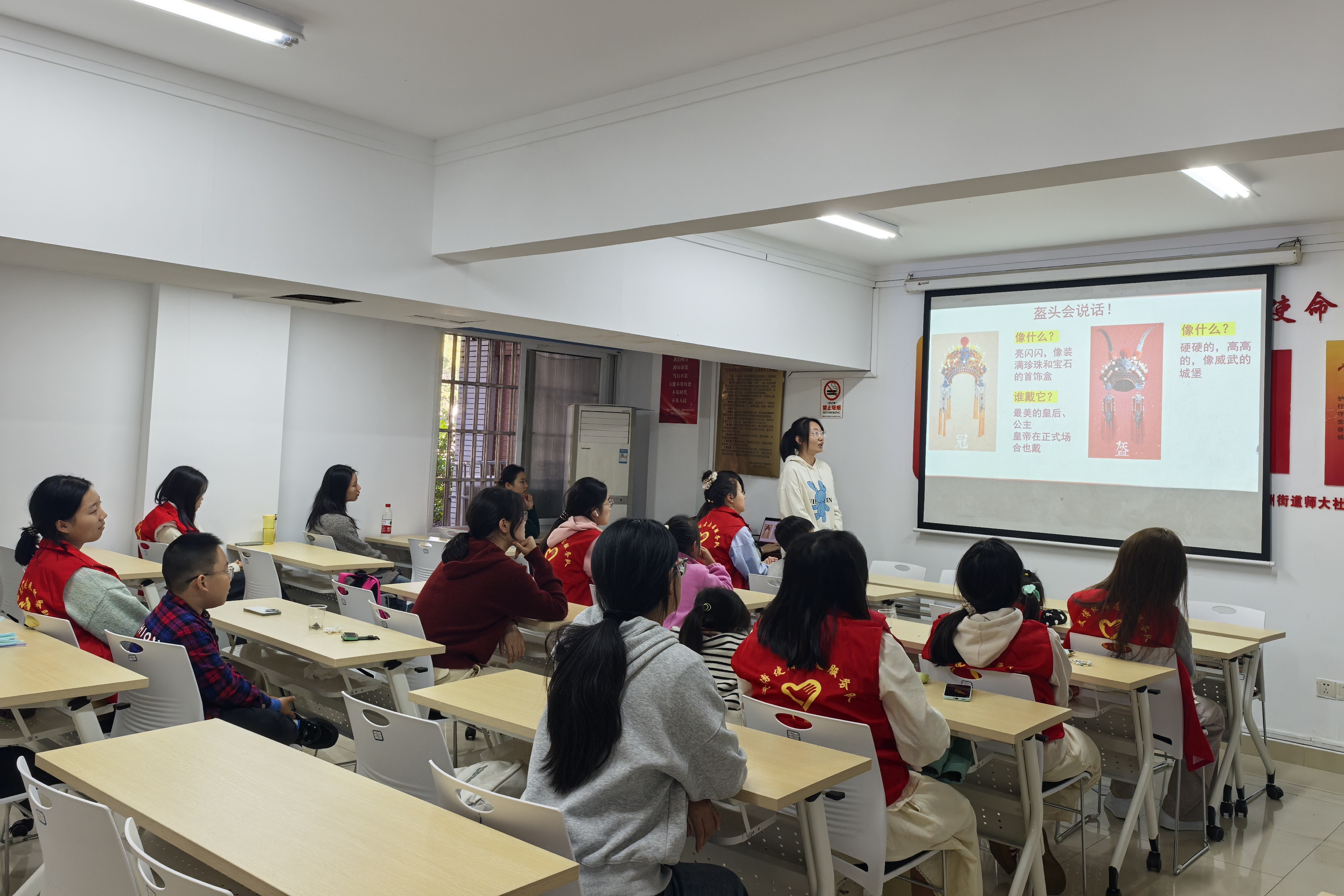 此次活动贯彻校社协同育人理念,不仅让小朋友们体悟盔头文化之美,而且让志愿者锻炼文化传播技能,为非遗传承注入青春动能。