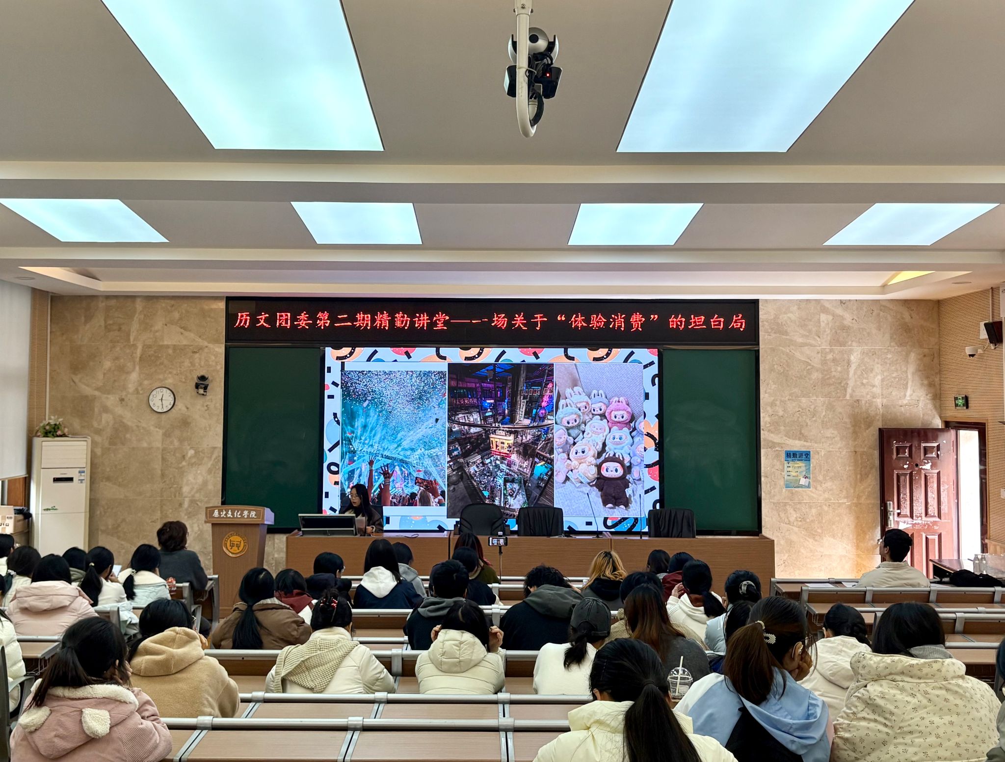 (通讯员 陈杨夫 陈一杰)11月20日中午,sunbet申搏团委青创部在历文院203学术报告厅举办第二期精勤讲堂“一场关于‘体验消费’的坦白局“。此次活动由2023级学生孟湘主讲,青创小组全体成员参加。