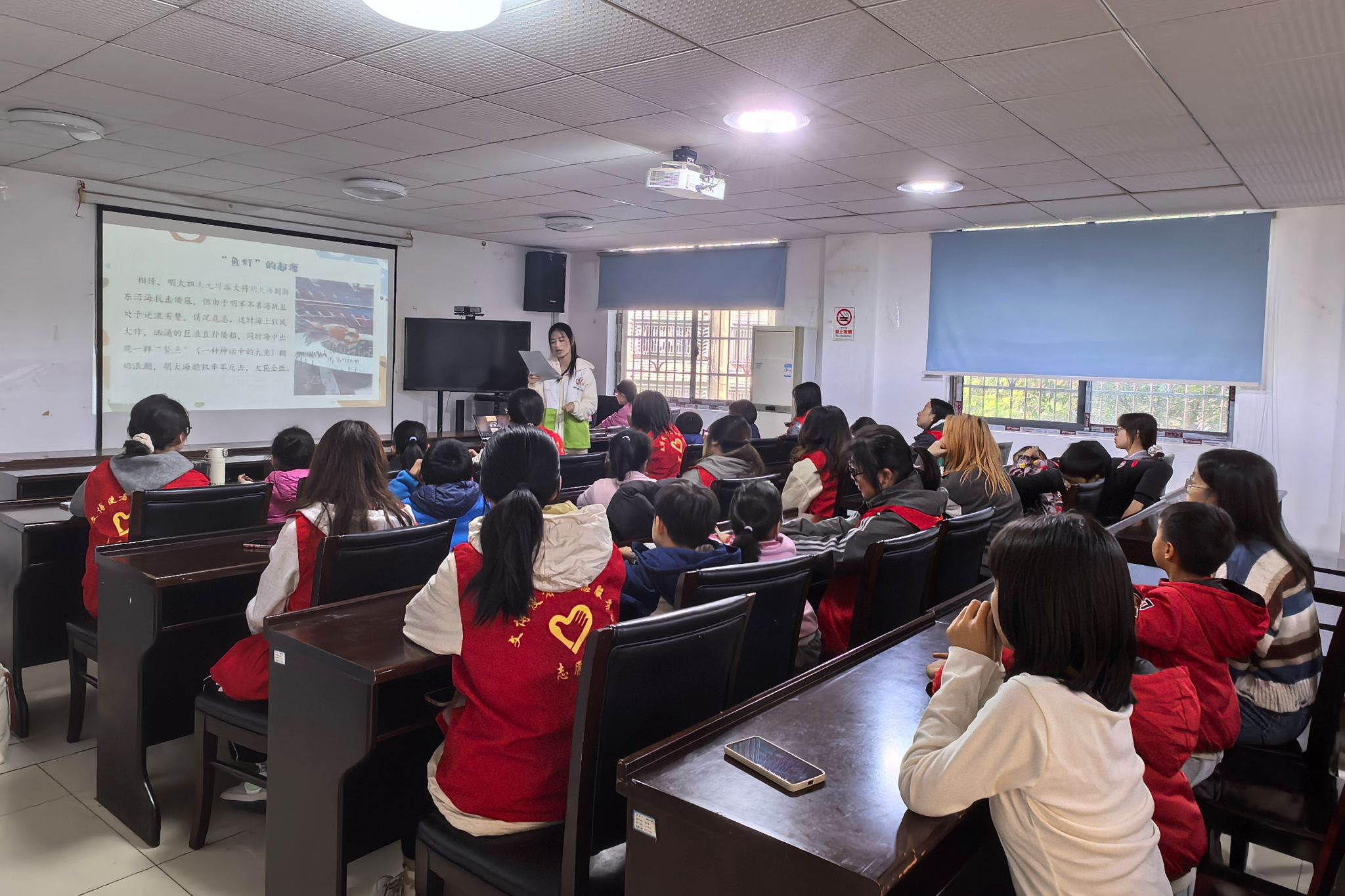 活动以谜语竞猜和古诗朗诵开场,引出非遗鱼灯。在知识讲解环节,主讲人依托明代抗倭传说,系统梳理了鱼灯从东南沿海传入湖湘地区的历史脉络,重点阐释了其从传统照明工具到融合音乐、舞蹈与工艺的鱼灯舞的演变历程。通过欣赏不同流派的造型特征与表演风格,小朋友们进一步感受到鱼灯文化的地域特色与艺术智慧。